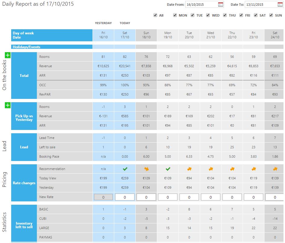 - • Day by day demand, pick-up and revenue insight for any property